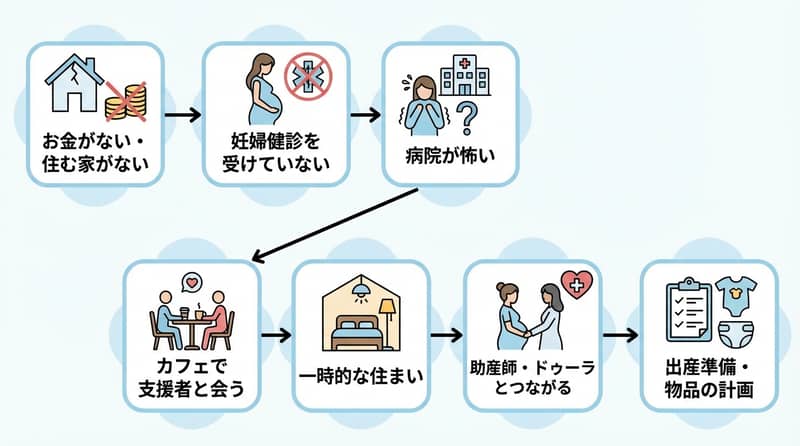 偶然の出会いでも、住まいの提供と周辺支援の紹介が揃うと、妊娠後期の生活は短期間で安定へ寄る。