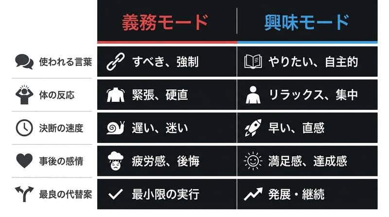 • チェック1:「行きたい」じゃなくて「行くべき」が先に出たら黄信号